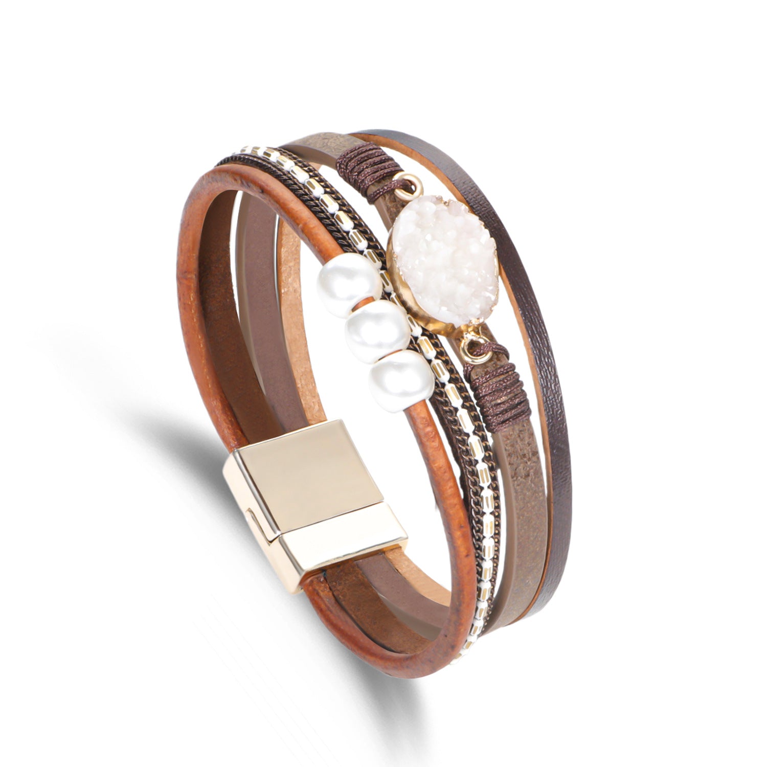 Leather Braided Pearl Bracelet ZGWS24085GD