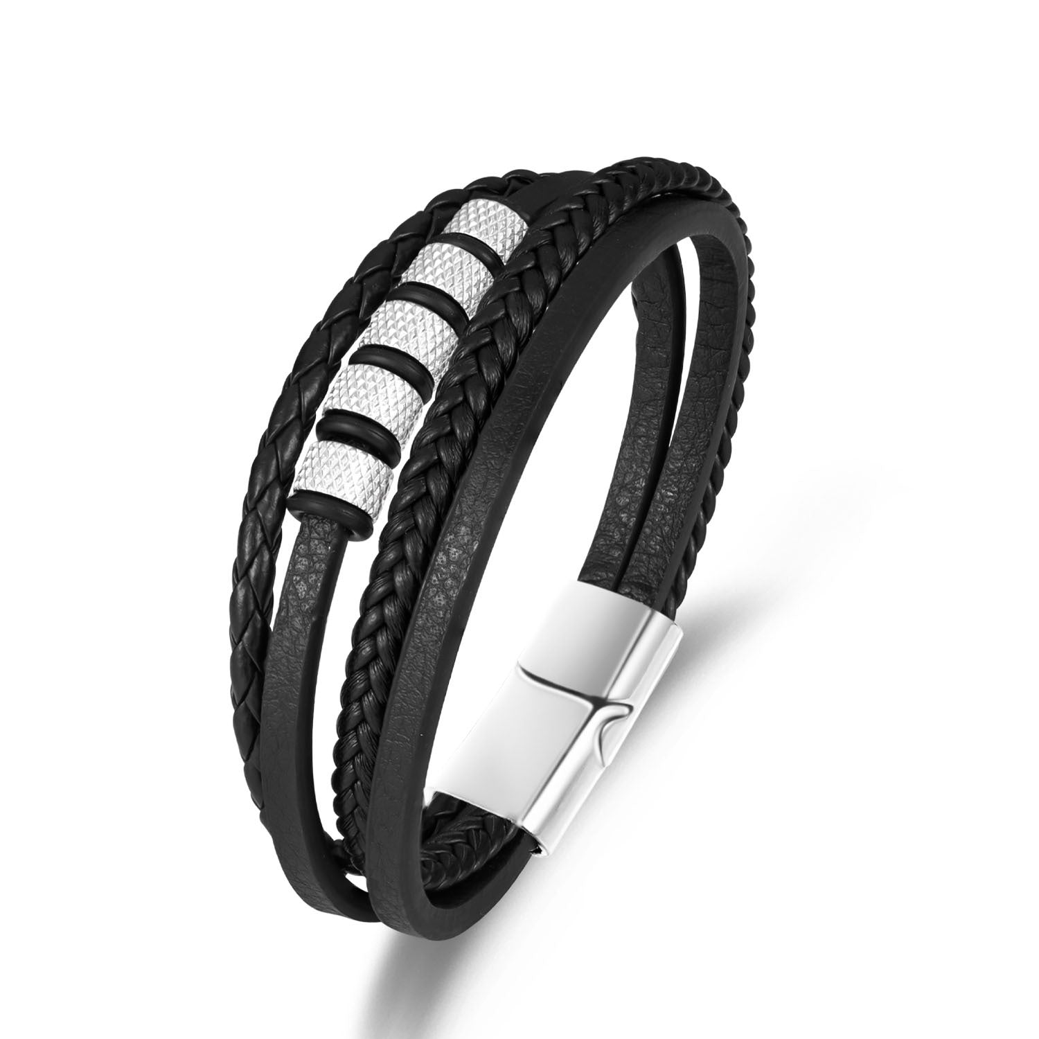 The black leather bracelet is the ideal accessory to complete any outfit. Its eye-catching, elegant design with the braided leather makes it suitable for any occasion and definitely attracts attention.